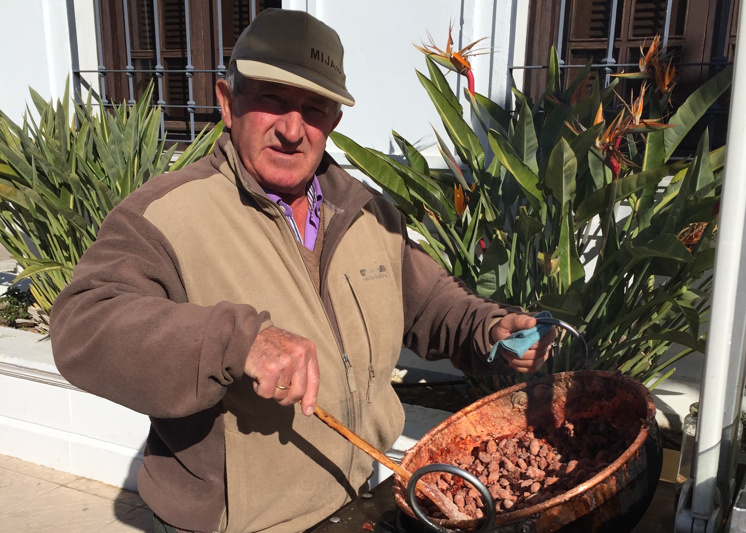 Mijas street vendor roasting almonds